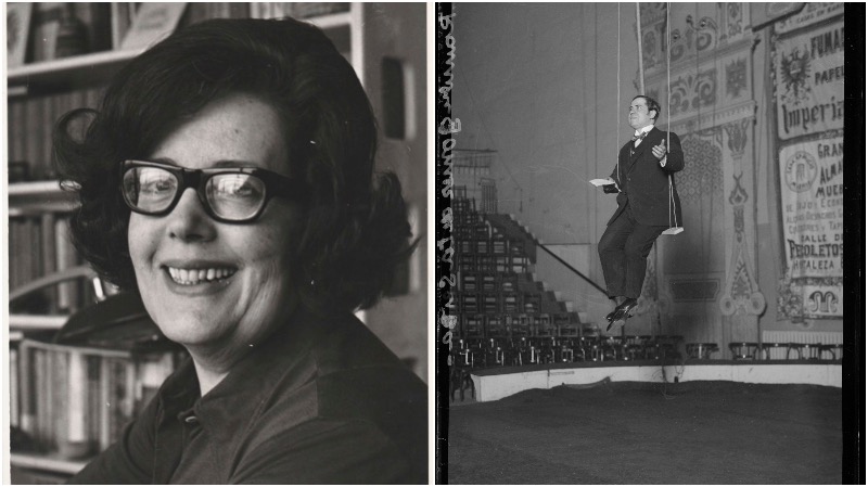 Izquierda: Mª Dolores de la Fe Bonilla. Derecha: Ramón Gómez de la Serna leyendo un discurso en un trapecio en el Circo Price, 1923. Fotografía de Luis Ramón Marín © Luis Ramón Marín, VEGAP, Madrid, 2020. Banco de Imágenes de VEGAP