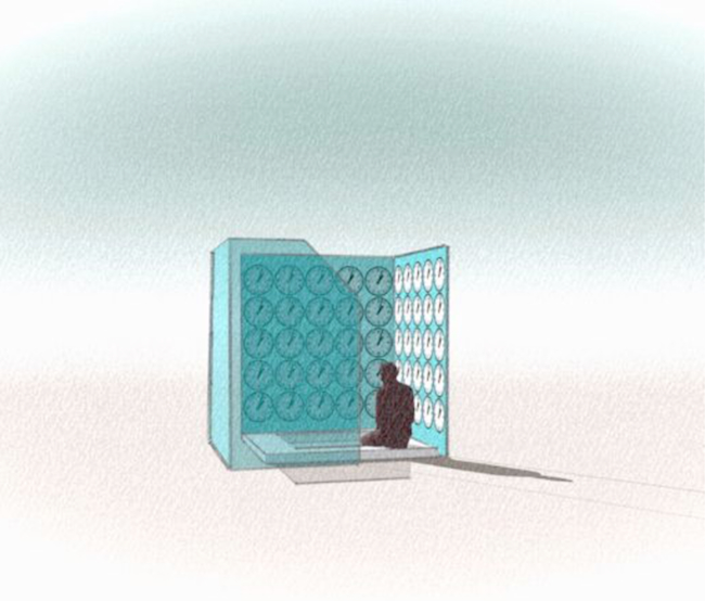 La intervención de Krakowski, “Prime Time”, plantea la creación de un lugar que persigue cumplir tres funciones: presencia literal, función crítica y función discursiva. Se proyecta un espacio-estancia creando un habitáculo semi-confinado que permita a los familiares y la población en general conmemorar y homenajear a las víctimas del accidente del metro, a través de un “muro” de relojes de estación con las manecillas paradas a las 13.03h. (hora exacta en la que ocurrió el accidente). Esta imagen pretende designar un hecho concreto del pasado, un instante que irrumpe y trunca la línea de tiempo en lo privado, pero que a la vez marca el inicio de nuevas temporalidades que se abrirán a los espacios públicos de la consciencia social.