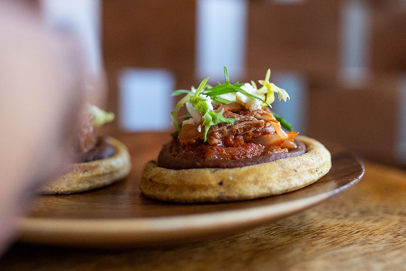A partir de la publicación de “Viva México Cabrones”, libro imprescindible de la gastronomía contemporánea que recoge el trabajo íntegro de los últimos seis años de Punto MX, y de sondear a sus clientes, Roberto seleccionó algunos de los platos más emblemáticos para el nuevo menú 2019 Año del Maíz en Mezcal Lab. Platillos como las Palomitas de Langostinos, perfecto para compartir y acompañar a la bebida, o las quesadillas de maíz morado, otro icono.