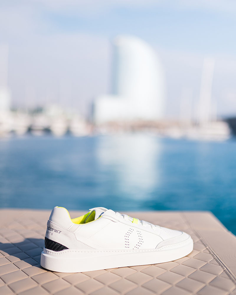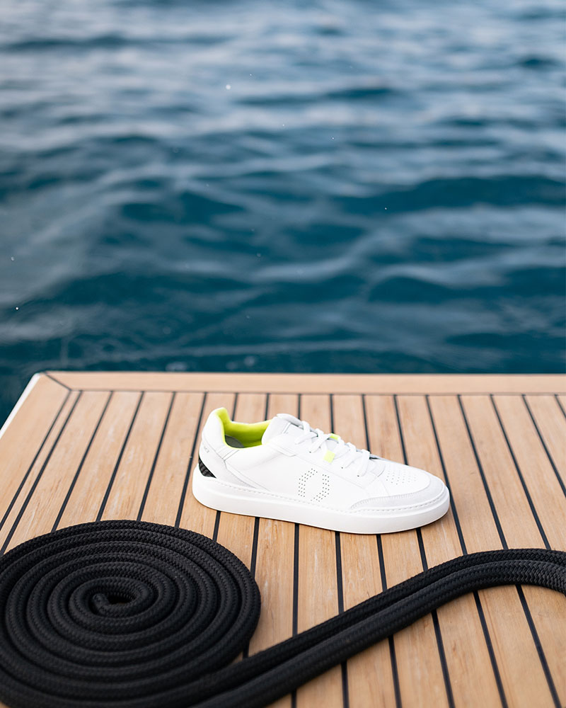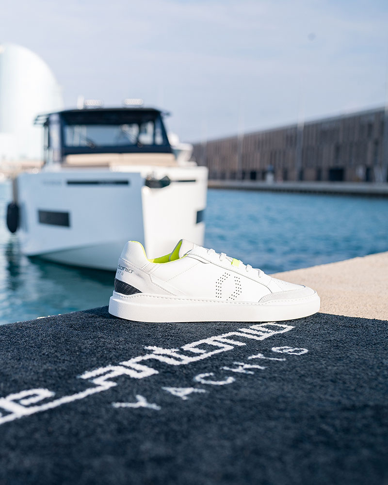 Además de exclusivo, este nuevo modelo de sneakers es totalmente unisex, y en él, se reúnen los principales atributos de ambas marcas. Está fabricado en goma, piel, ante italiano y nobuck, y atraca en nuestra imaginario con interesantes detalles como su lengüeta elaborada con el material de la tapicería usada en los barcos de De Antonio y la parte trasera en fibra de carbono.