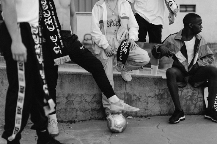Para la campaña fotográfica, Javier Cortés y Lara Tascón se fueron con sus cámaras a un suburbio de Madrid para disparar a un grupo de amigos que suelen juntarse para echar unos partidos de fútbol desde que eran unos niños.