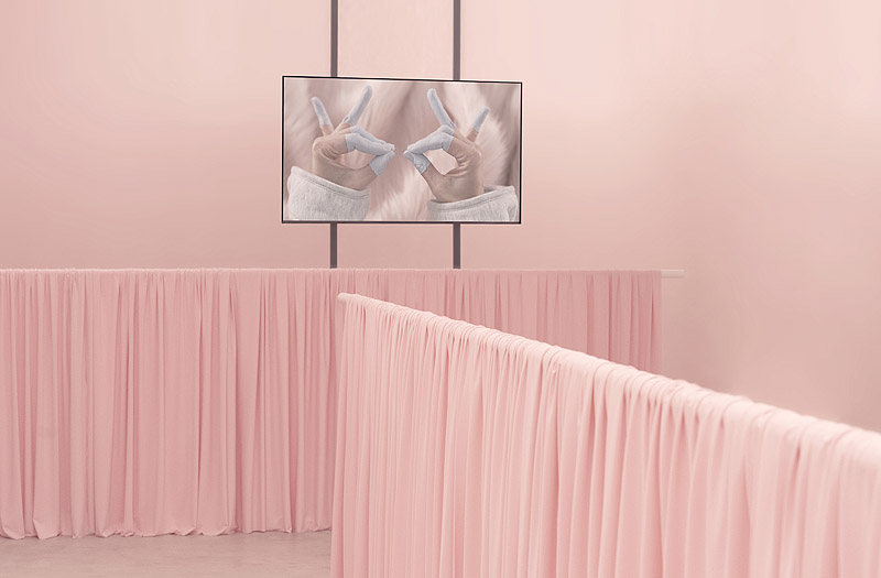 Una especie de Mitologías de Barthes en tiempos de realidad virtual y desmaterialización creciente, si es cierto que las mitologías son un ‘primer desmontaje semiológico del lenguaje de la cultura de masas’. Y es que el lenguaje hoy va más allá de la mera palabra. Es también el uso de la imagen, la textura de nuestras prendas, la forma de nuestros vibradores, los colores de nuestras salas de espera, las prótesis que nos ‘aumentan’. No es de extrañar entonces que encontremos una serie de materias y objetos referenciales y simbólicos (formas suaves, colores pastel, drones de compañía, paisajes nevados, lechuzas y mochis…) sacados de lo que Baudrillard (ya) llamó el ‘sistema de los objetos’.