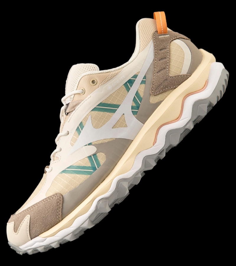 Las nuevas zapatillas técnicas de Mizuno combinan el aire runner con el de los senderos. En el upper, nos encontramos un perfil deportivo y dinámico sin proporciones exageradas que lo hará adaptarse a cualquier estilo. Pueden funcionar de maravilla con pantalones técnicos, pero ojo a cómo quedan con unos jeans holgados. En cuanto a construcción, el upper está construido con una base de malla ripstop cortesía de Gore-Tex. Sobre esto, tenemos paneles engomados que recubren toda la silueta y apliques de ante en la puntera y el talón. Como detalles adicionales. El cuello y la lengüeta se presentan acolchados y hay un pull tab en el talón.