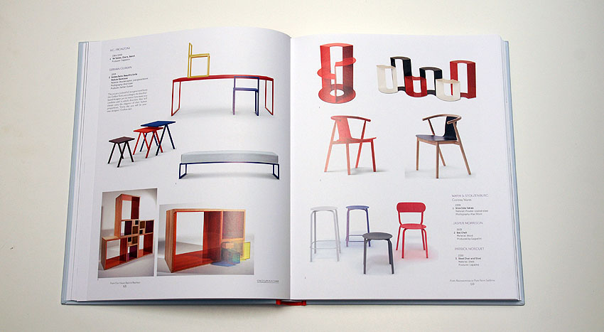 El último libro que han sacado sobre este tema se llama One Upon a Chair, y no es como pudiera parecer un compendio de sillas. Es algo más que eso, es una recopilación de mobiliario, fundamentalmente, creado en los dos últimos años. Es un buen tocho de libro, casi 300 páginas con sugerentes capítulos como “From Our House Back to Bauhaus, Performing Arts and Crafts, A Tale Told by Design o Hunting and Collecting. Contiene desde trabajos de conocidos diseñadores como los hermanos Bouroullec o Hella Jonguerius hasta diseños de novísimos en el mercado como Petter Skogtad o Mathias Hahn. Lo arti, lo funcional, lo artificial, lo natural, lo sintético, lo natural, todo vale si la imagen resultante es impactante, ya sea por su sofisticación o por su sencillez. El libro mezcla conceptos como salvar el mundo con estilo o como intentar diferenciar entra la función racional y la función romántica. Raro y original ¿no? Lo divertido de este libro es que si se lo encontrara un hombre en los años 60 y solo viera las fotos no sabría si el libro es del pasado o del futuro. En la primera década del siglo 21, que cerramos ya, el look predominante es más cercano a la madera trabajada de una forma artesana que el metal ionizado aplicado a un mobiliario modular.