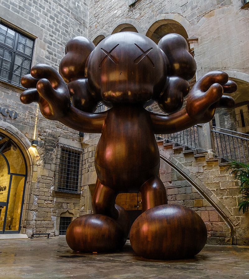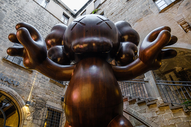 Moco Museum presenta “Final Days”, la impresionante pieza de seis metros de alto del artista americano Kaws, situada en el patio de la entrada principal.