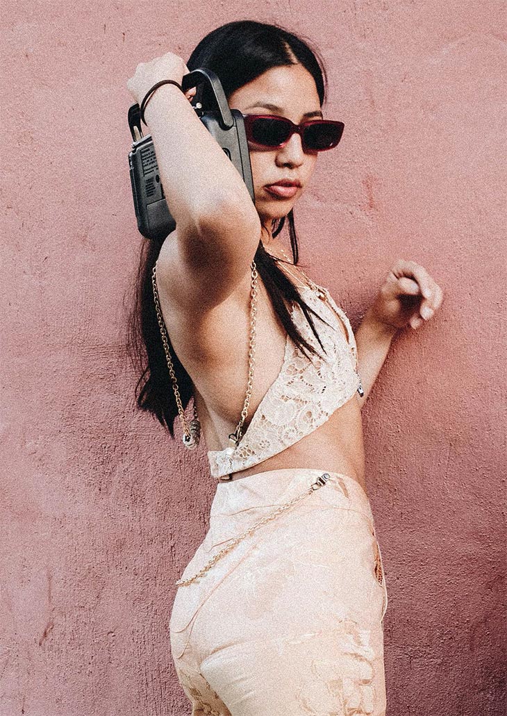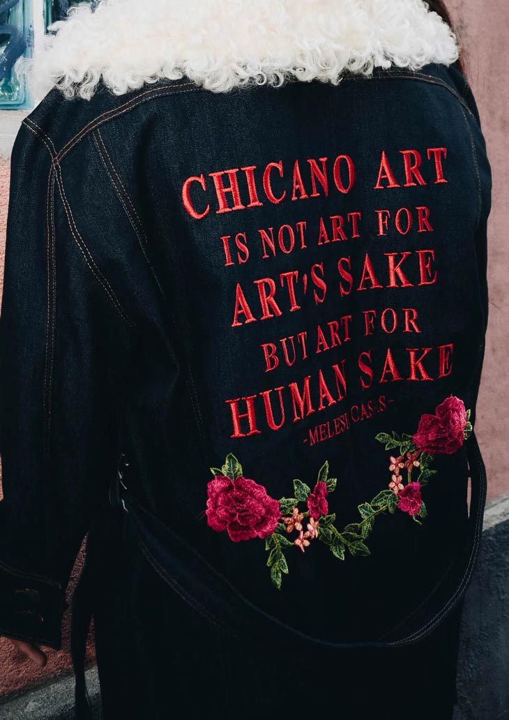 ¿Cuál es tu conexión con la cultura chicana? Este proyecto / colección nació por la curiosidad y fuerza que me transmitían las imágenes sobre la cultura chicana y en especial las mujeres chicanas de los 90s , son mujeres latinas reales, que luchan por sus derechos y por la igualdad. En muchos aspectos encuentro la cultura chicana muy parecida a la peruana.