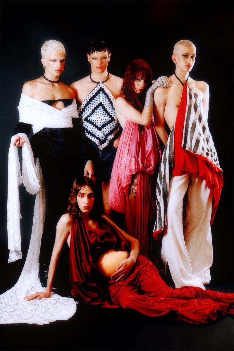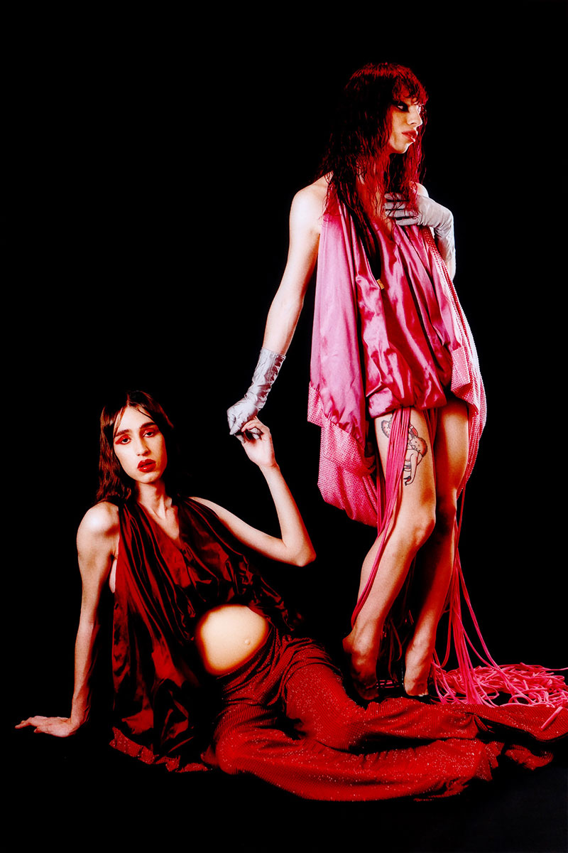 Cuando pienso en las prendas que diseño yo mismo interactúo con mi cuerpo y busco infinidad de formas posibles de poder ponerla en otros. Lo agénero y lo queer, en mi caso, va más allá de prendas rectas, minimalistas y carentes de información. El futuro es queer, es color, es brillo…