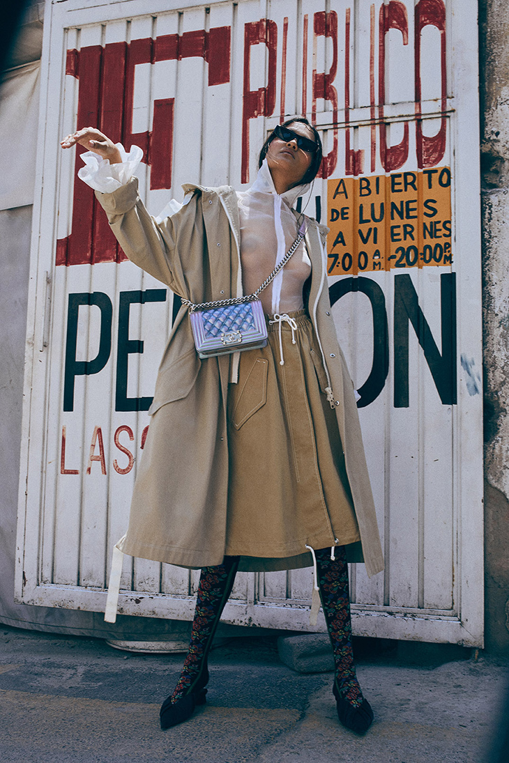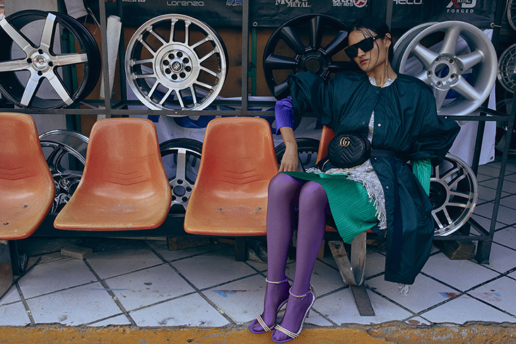 La colonia Juarez es uno de los barrios del centro de México más emblemáticos. Sus calles están llenas de encanto y espíritu 100% mexicano. Este editorial de moda para chicas ha sido realizado en sus calles, con un taller mecánico de fondo contrastando con la feminidad de las prendas. Un mix de texturas, superposiciones y colores los estilismo inspiran y dan sentido a la moda de nuestro siglo, modernizando las prendas de lujo.