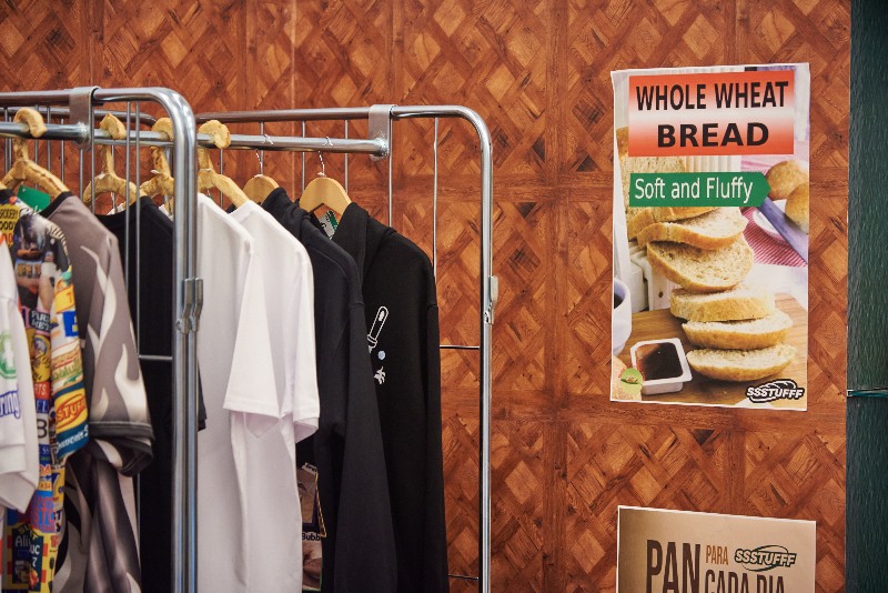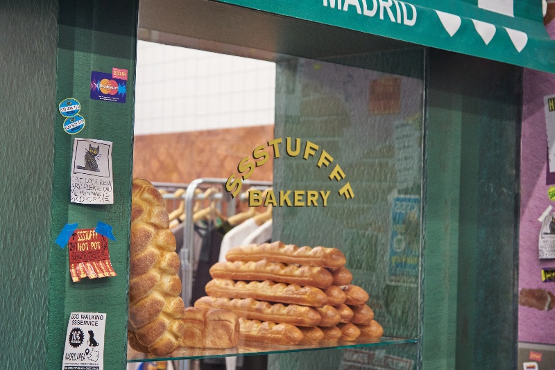 Teniendo claro el objetivo que tienen José y Hao siempre a la hora de hacer, es más fácil entender todo lo que hacen. Porque cuando entres, vas a pensar que estás en la típica panadería de barrio con dulces (que no son reales) y con la ropa colgada en perchsa en forma de pan. Te aseguramos que no has visto nada igual en ninguna tienda de Madrid como las que hace SSSTUFFF.