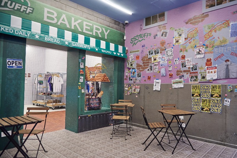 Después del éxito de la tienda de moda urbana de Barcelona con estética de supermercado, SSSTUFFF abre una nueva tienda en Madrid y parece más una panadería.