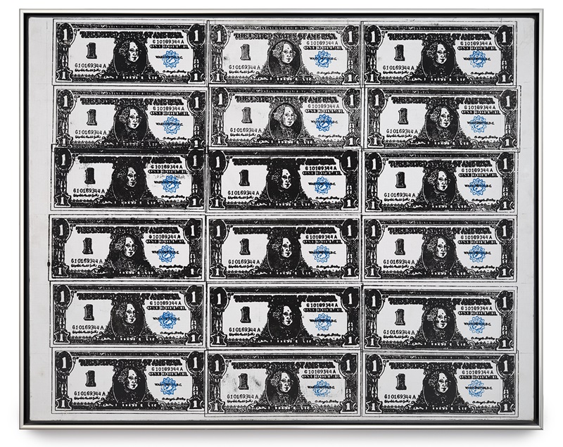 Andy Warhol, Eighteen One Bollar Bills, 1962, Polymer paint, 61×76.2 cm. © 2024 The Andy Warhol Foundation for the Visual Arts, Inc. / Licensed by Artists Rights Society (ARS), New York