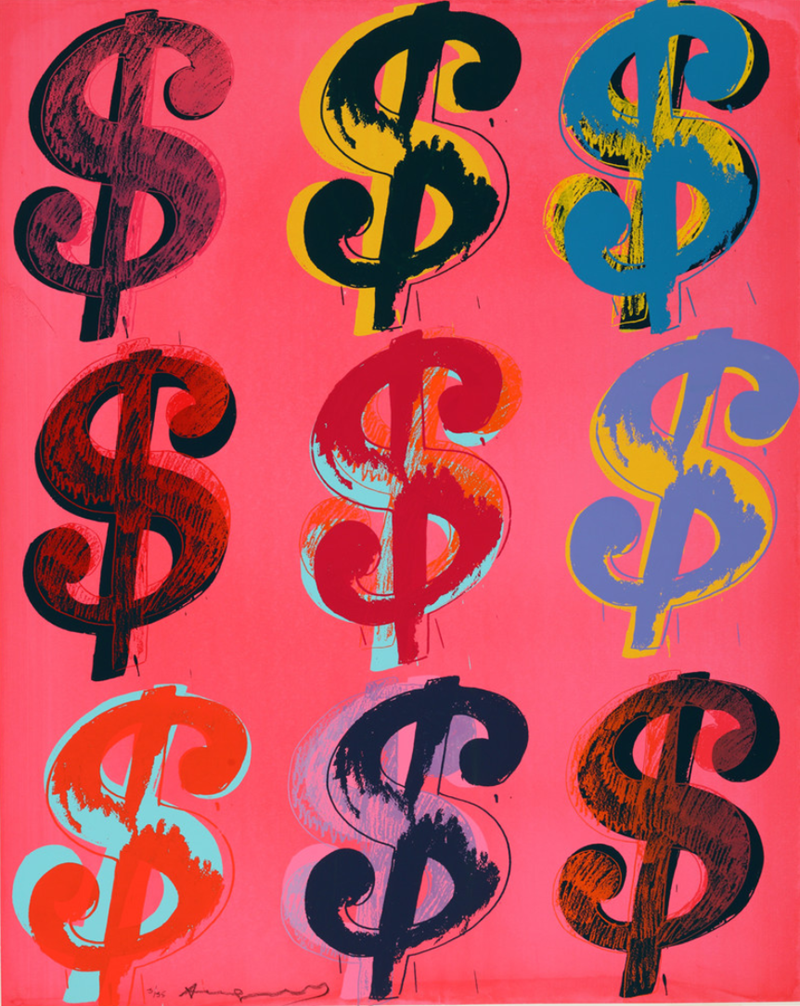 Imágenes superiores: 1) © Photo Dan Kullberg Andy Warhol Spritmuseum. 2) Andy Warhol, $ (9), 1982 © The Andy Warhol Museum, Pittsburgh; Founding Collection, Contribution The Andy Warhol Foundation for the Visual Arts, Inc. 1998.1.2460.1