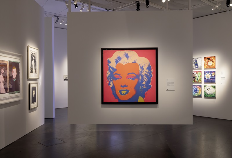 El recorrido expositivo comienza con una selección de los primeros trabajos de Warhol, donde se hace evidente su audacia comercial. El dinero es el protagonista de la obra Eighteen One Dollar Bills (1962), que pertenece a su primera serie de serigrafías (en la que está incluida también la 200 One Dollar Bills, vendida en Sotheby’s por 43,8 millones de dólares en 2009). Más adelante encontramos creaciones ampliamente reconocidas por marcar un hito en la historia del arte pop, como las famosas Brillo Boxes (1964), donde el artista pone de relieve la preponderancia de la mercantilización y la producción en masa.