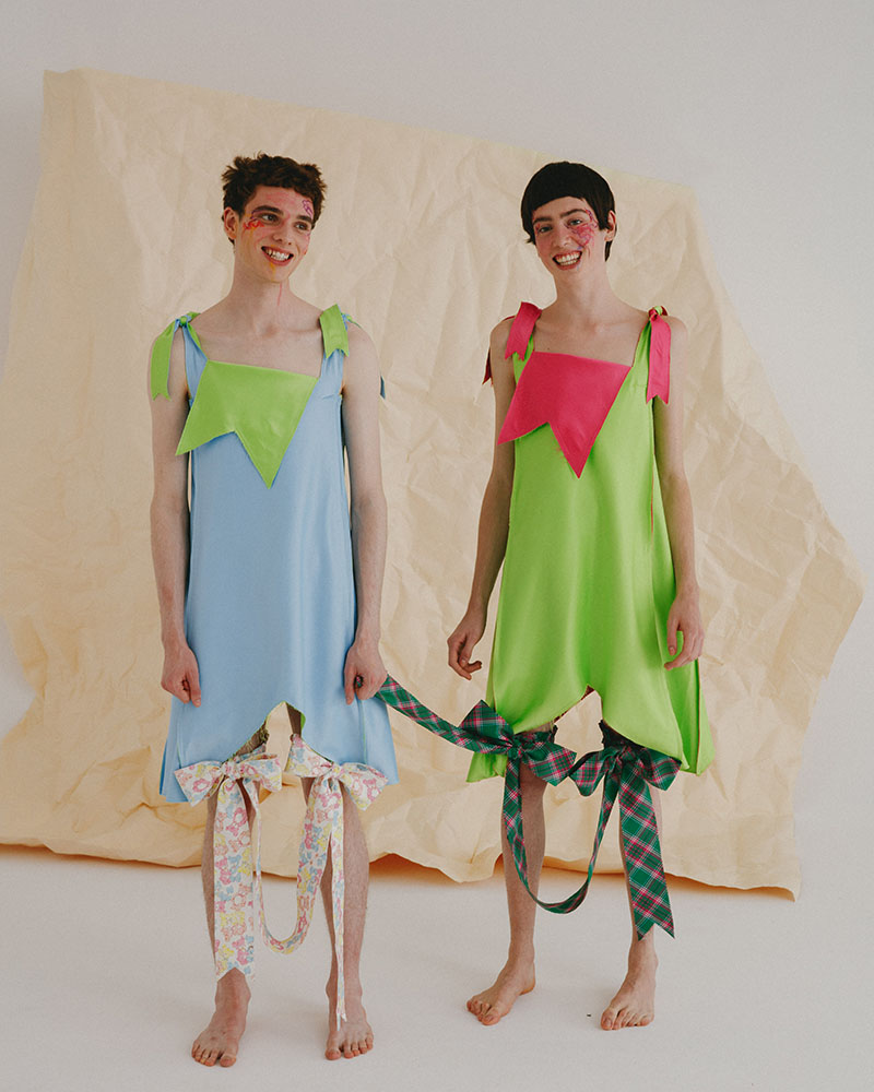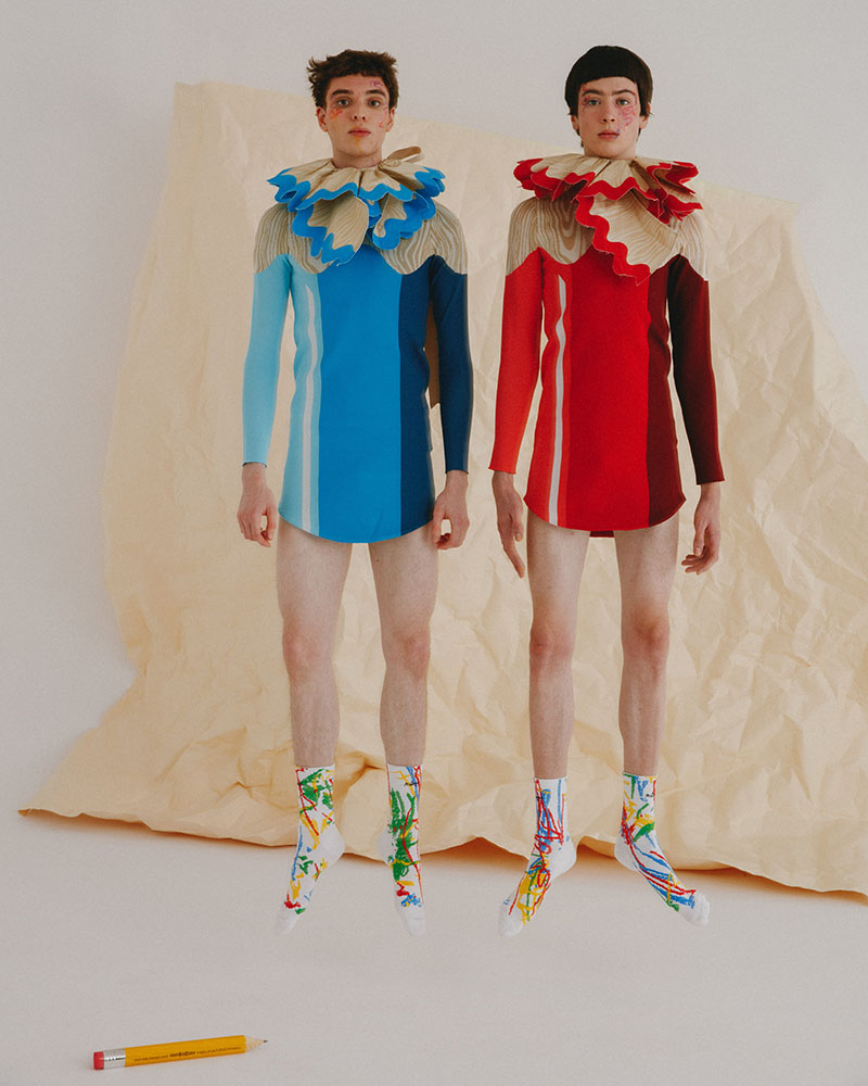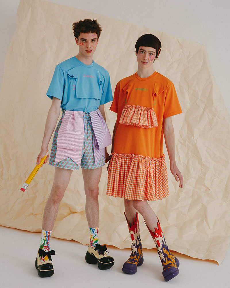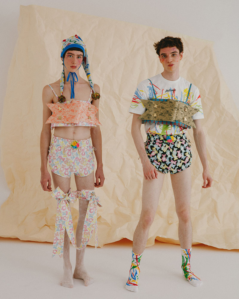 Para el lookbook de la nueva colección de Motoguo SS23, han querido seguir la temática de la colección, por eso representan unos divertidos modelos, que en actitud infantil, defienden las diferentes prendas llenas de locas combinaciones de colores, estampados y texturas. También incluye innumerables detalles en muchos de los looks que representan el entorno doméstico de esta etapa primaria en la vida de cualquier niño.