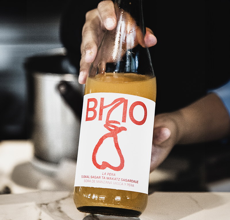 En la bodega, los protagonistas son vinos vascos, de la Rioja y franceses- por cercanía a Donosti-. Moviéndose entre un estilo tradicional y más hípster, nos encontramos una selección de sidras vascas muy interesantes. Durante la degustación, nos decantamos por Bizio, una sidra de manzana y pera de corte moderno.