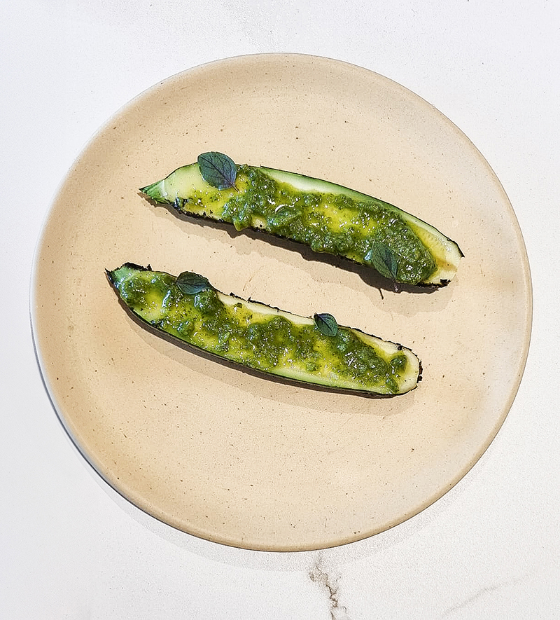 Con el primer bocado del menú, nos ubicamos en el oriente medio, donde un pan tipo pita y una baba ganush nos harán de punto de salida en este menú.