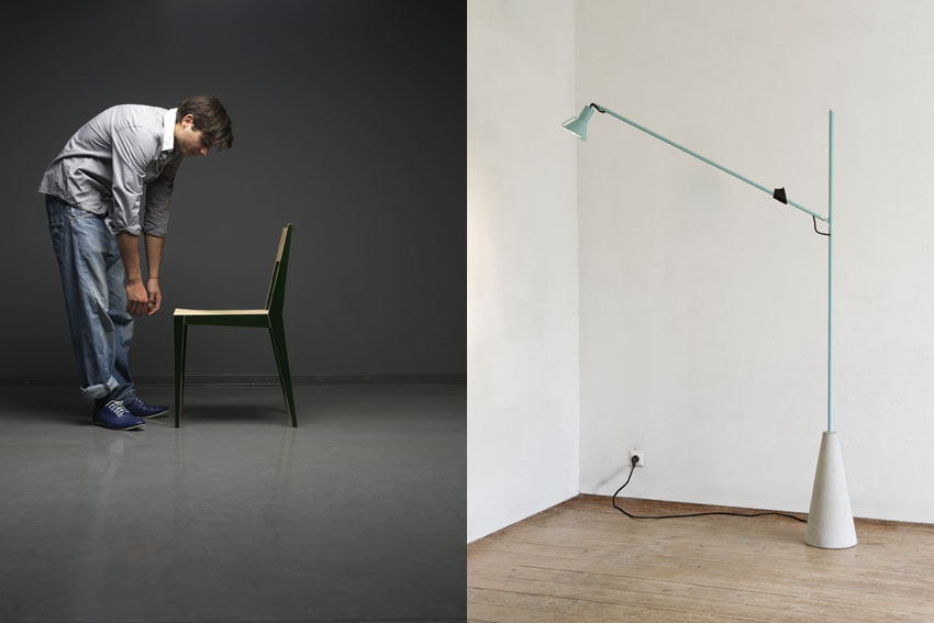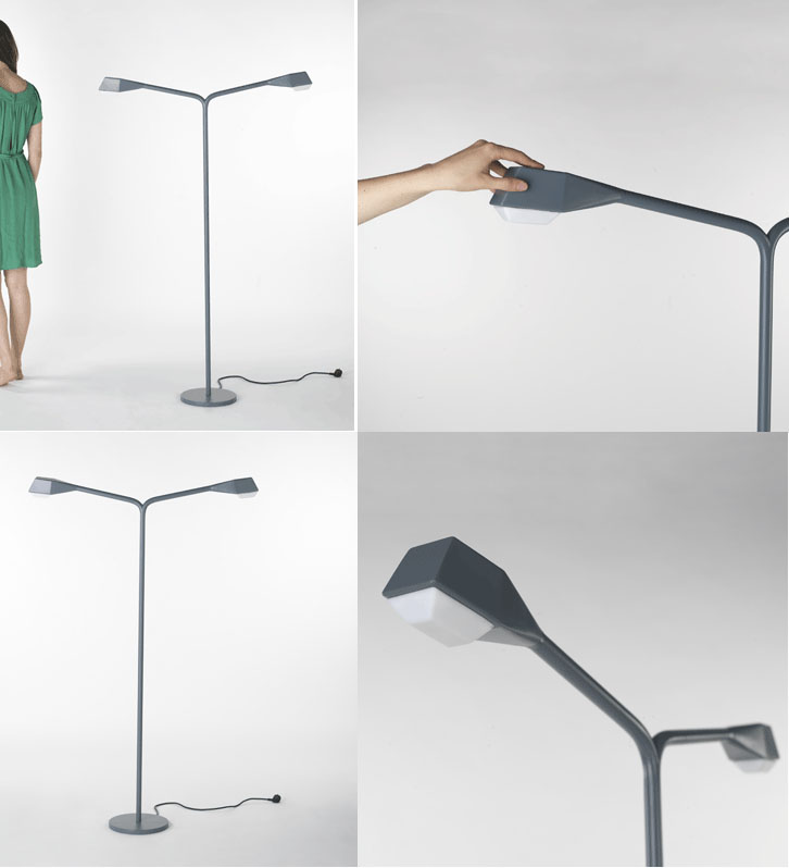 Arriba: B45 un lámpara de pie para interiores que te lleva al exterior y que además juega con las proporciones. Diseño de Milia Seyppel y Laura Straßer
