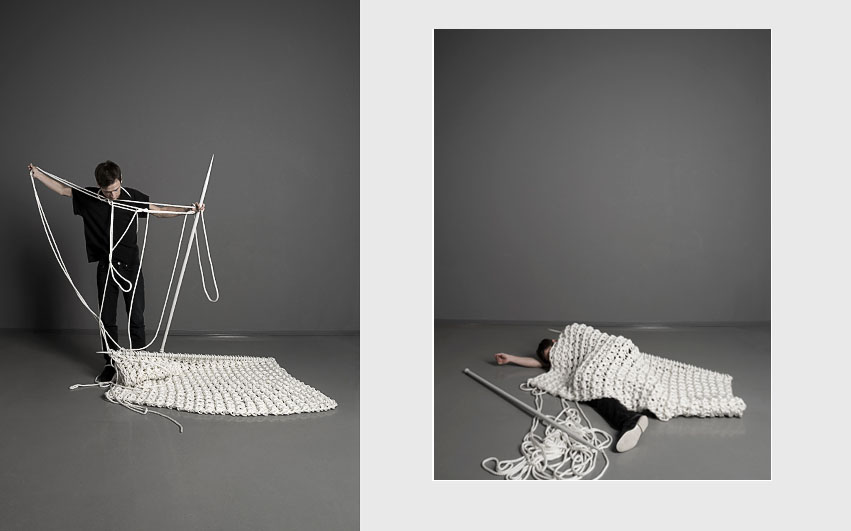 Arriba: Alfombra 300 hecha de punto a una escala gigante hace que te sientas en otro mundo. Diseño de Sebastian Schönheit