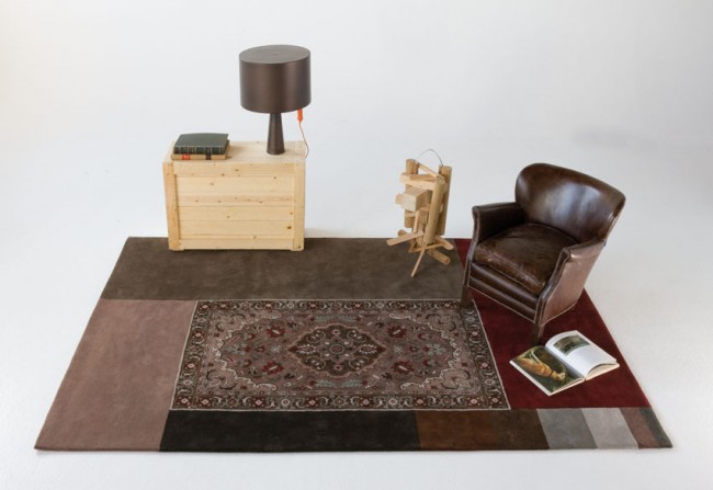 Arriba: Extended, diseño de Marti Guixé. Una alfombra persa comparte espacio con otras más contemporáneas. Lo clásico y lo moderno unidos por unas puntadas. Esta es una de mis favoritas!
