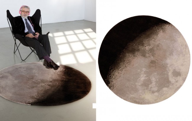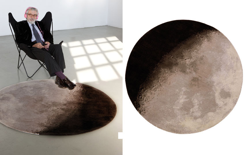 Arriba: Luna, una reedición de una pieza de los 80’s de las alfombras La Tierra y la Luna de Oscar Tusquests. Los avances tecnológicos han permitido darle a esta reedición una mayor definición fotográfica, también se ha ampliado su tamaño.