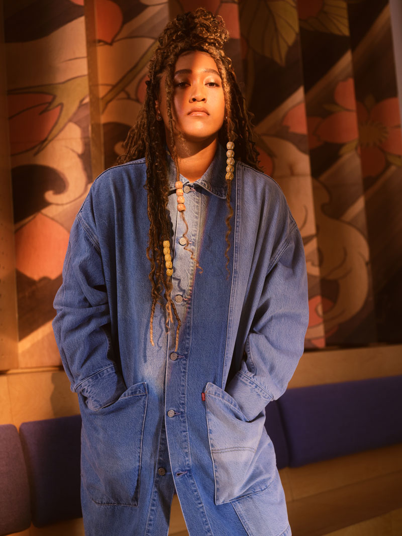 Tenis y moda, un partido de dobles donde arrasa la colección de prendas denim Levi’s x Naomi Osaka.