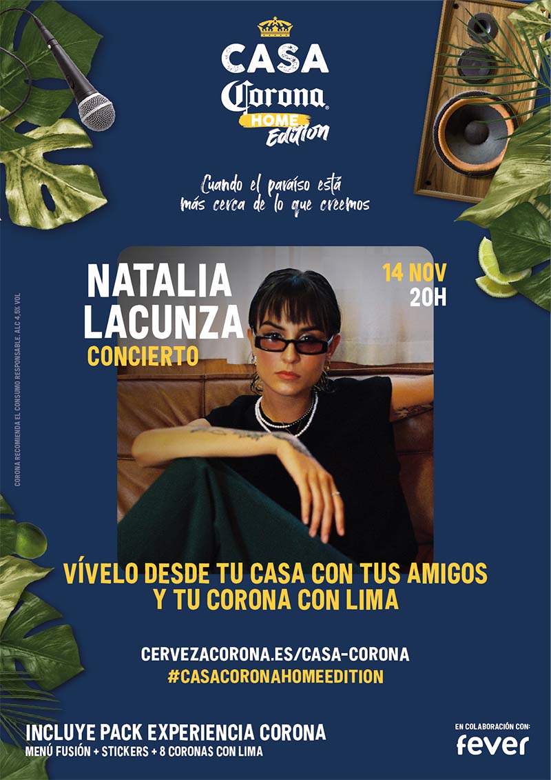Natalia Lacunza directo en Casa Corona Home Edition – 14 noviembre a las 20.00h. Puedes encontrar toda la info completa por aquí.