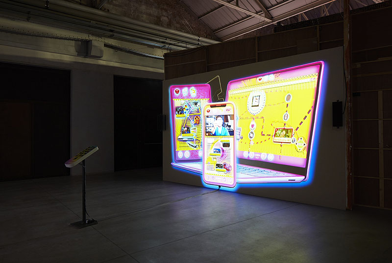 Screen Talk es una de las obras que construyen la primera exposición individual del artista en Italia: Digital Mourning. La exposición en Pirelli HangarBicocca refleja de cerca el mundo contemporáneo y en algunos casos hasta lo anticipan.