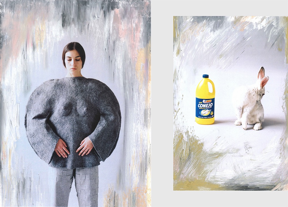 Háblanos de tu colección fin de carrera (Antropometry of a Storm): ANTROPOMETRY (Sentido literal, el estudio de las medidas del cuerpo) OF A STORM (Descontextualizado, se refiere al mundo interior y caótico de los sentimientos). En realidad, no hay un tema de inspiración muy marcado. Partí desde la teoría de la selección natural de Darwin, pero el tema quedó al final muy diluído. Algunos de los conceptos con los que he trabajado son: las formas del cuerpo desnudo, la desestructuración, la soledad, y la escultura. Intenté mezclar materiales como la manta térmica, la malla tubular de nylon (en el tricot), o la silicona líquida (en los collares), que son materiales fríos y distantes al cuerpo y a lo natural, con lanas y seda, e intentando utilizar al máximo técnicas manuales como el armknitting, el trenzado en tafetán, el moldeado de los collares, a modo de escultura… Intentando evitar que lo artesanal pareciera rústico y buscando el choque constante entre lo natural y lo artificial.