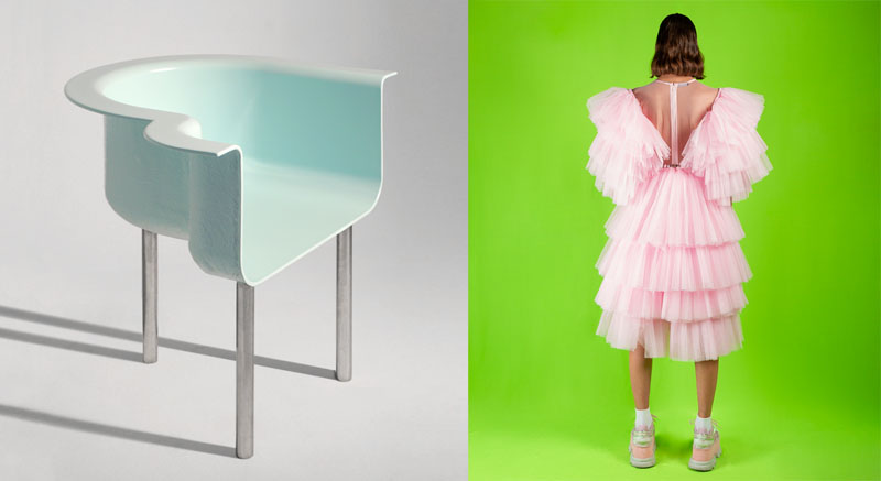 Imágenes superiores: Silla Piscina de Tornasol Studio + Colección SS20 de Dominnico (Foto: Adrian Cuerdo)
