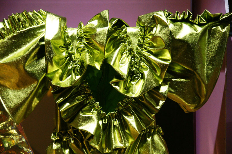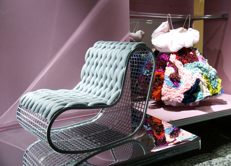 Por un lado teníamos las piezas de 8 jóvenes premiados en la tercera edición de Neo2 Designers Awards, 4 en la categoría de moda y 4 en la de mobiliario: Cambres Design, Cherry Massia, Dominnico, Ela Fidalgo, Joel Blanco, Paloma Suárez, Teresa Fernández Pello y Tornasol Studio. Además Omayra Maymó presentó una pieza exclusiva resultado del premio Heineken.