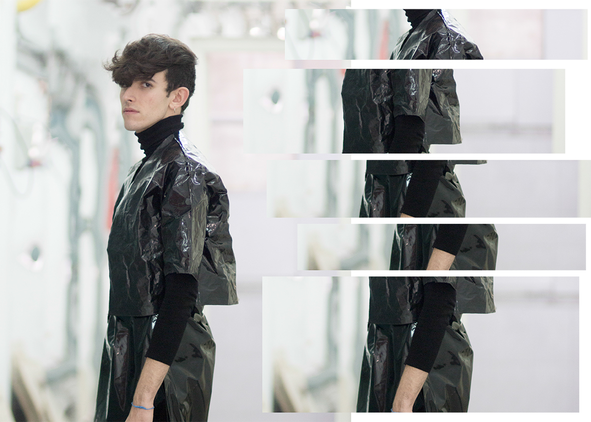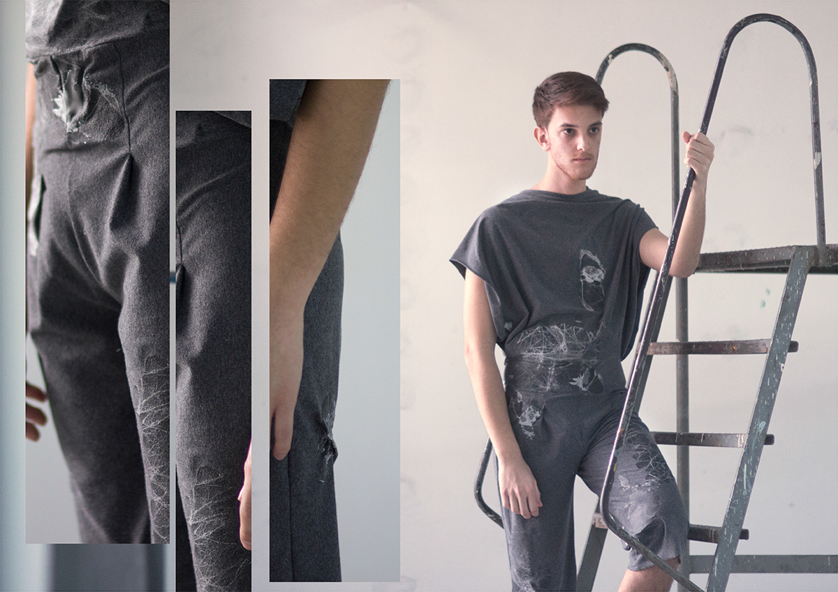 ¿Cuál es el concepto del trabajo y cómo veis el futuro de la moda? Este trabajo se basa en la unión de dos conceptos, el de la colección a través de una reflexión sobre como nosotros marcamos la ropa con nuestras rutinas y nuestros gestos, como sin quererlo creamos un nuevo lenguaje sin necesidad de que sea oral, sino más visual, una forma de marcar la ropa con la esencia de cada uno. A través del material de las prendas, en un momento determinado se crea ese lenguaje a partir de una performance, unas prendas se comunicaban a través del estampado y otras por su forma.