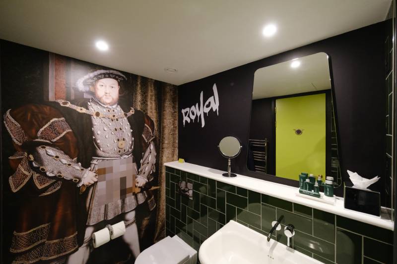 En el hall, Henry, un robot mayordomo, te atiende al llegar y, una vez dentro, comienza la verdadera fantasía. Los diseños atrevidos y vanguardistas del hotel se inspiran en los iconos británicos tradicionales, como aquellos relativos a la Familia Real, los lugares emblemáticos de Londres y su famoso metro. Todo ello con un toque heterodoxo y moderno, con elementos destacados como la escultura del Big Ben en forma de cohete que protagoniza el vestíbulo, las mesas con rimas cockney plasmadas en ellas y las grandes lámparas doradas en forma de campana que rinden homenaje a la famosa campana de la iglesia de la ciudad.