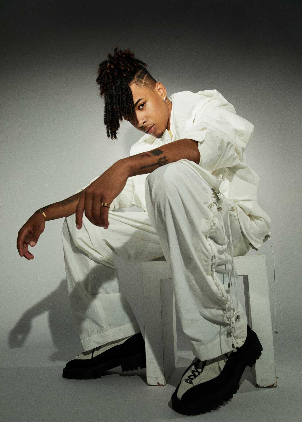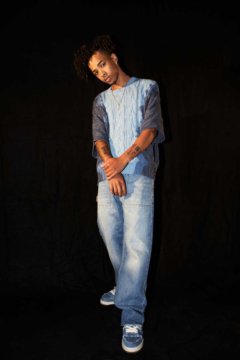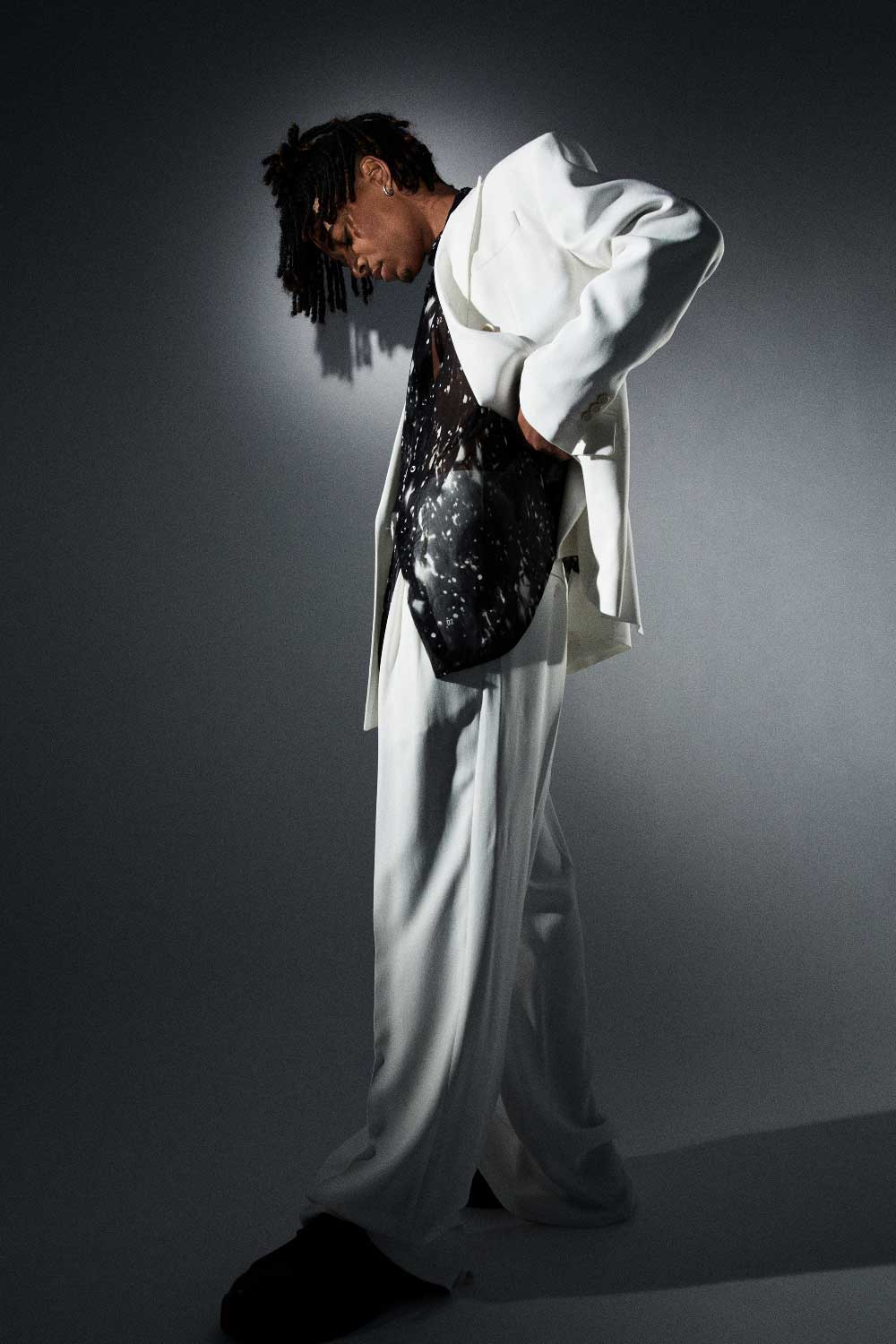 La moda me llama mucho la atención, lo de ser modelo… Me mola mucho, la verdad. Aparte de la música, es algo, que si no tuviera la música, a lo que me gustaría dedicarme. Por ejemplo, me encanta haber hecho esta sesión de fotos con Neo2. No había tenido la oportunidad de vestir así hasta ahora. Me encantó el look de Dior Men. Es algo sencillo y urbano a la vez. Me gusta la idea de salirme un poco del rollo chándal que llevamos nosotros, los que hacemos el género urbano. El mundo de la moda me mola mucho. Siempre me he fijado en muchos cantantes a los que les va mucho el rollo de la moda, y el vestir diferente. Y a mí me mola eso, buscar algo distinto, poco usual, y encontrarme un poco a mí mismo a través de nuevos estilos. La verdad es que de un tiempo a esta parte los raperos son los que mejor visten, los que tienen más dinero. Los de la música urbana son los que tienen mejores looks, mira a gente como J Balvin…