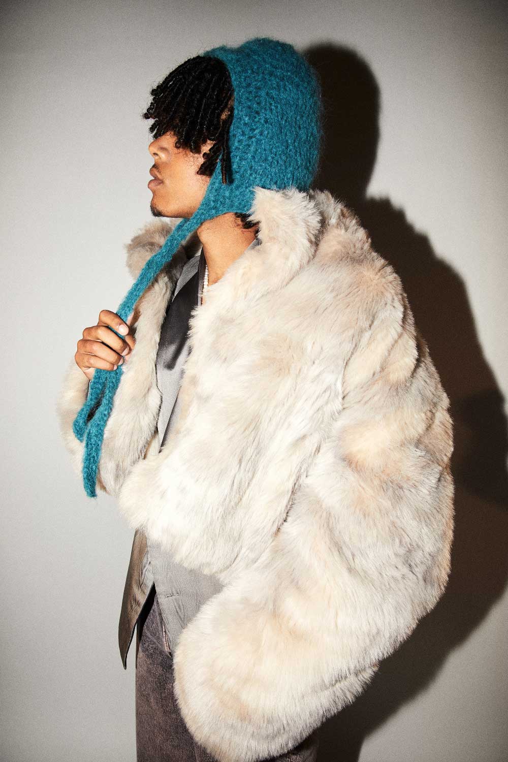 Nickzzy con gorro MAISON GRACEN + Chaquetón de pelo y americana gris MANS CONCEPT + Bermudas vaqueras SANDRO