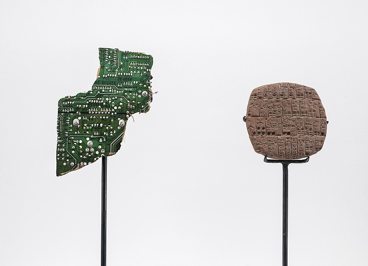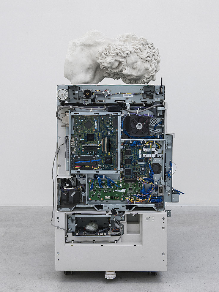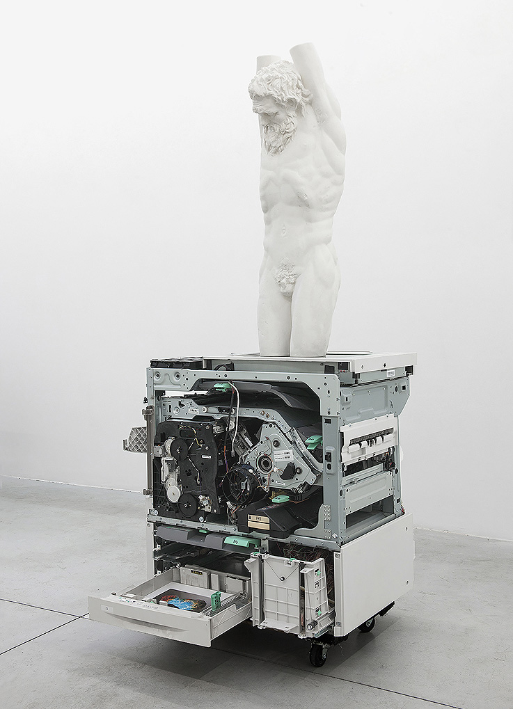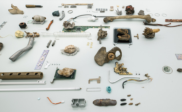 Una de las estrategias artísticas que utilizas con frecuencia en el discurso de tu obra es la que se corresponde con la ecuación A+B=F (de ficción): La suma de dos elementos no pertenecientes a una misma categoría que asociados producen un relato nuevo. En tu trabajo hay un lenguaje cerca de la docu-ficción, asociaciones de objetos rigurosas con la historia al mismo tiempo que fantasiosas; prótesis dentales + minerales, operaciones oculares laser + arte tradicional africano, corales + placas solares, chasis + caparazones de tortuga, impresoras + esculturas griegas + conchas marinas e imágenes de cosmos. Los objetos son elementos dinámicos y tú los agrupas y tejes asociaciones simbióticas que contienen una nueva energía. Háblame de porqué utilizas éste método en tu trabajo y que crees que lo hace eficaz: