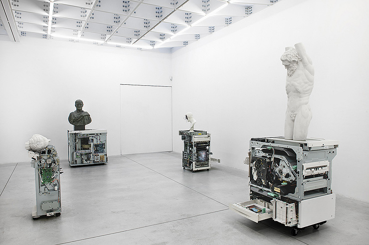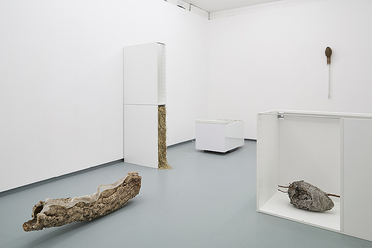 Nicolás Lamas: Creo que mi metodología de trabajo se volvió muy versátil cuando vine a Bélgica. Por necesidad, aprendí a trabajar con lo que tuviera a mano y adaptando mis ideas a las opciones que disponía. Mis proyectos van tomando forma como respuesta a la posibilidades que demanda cada contexto. He trabajado sin estudio por años así que fui poniendo más atención al espacio de exhibición, tomándolo como estudio temporal durante los días o semanas de montaje según el caso. Algo que empezó como carencia se transformó en una metodología de trabajo donde aprendí cosas que seguramente no hubiera hecho dentro de un estudio. Uno empieza a controlar los tiempos, los presupuestos, las decisiones, las características del proyecto y el manejo del espacio a otro ritmo, bajo otros parámetros y con otro tipo de presión. No hago dibujos, ni bocetos, ni maquetas. El espacio se convierte siempre en el punto de partida para cada proyecto. Es a partir de las características y potencialidad del espacio recién puedo pensar en el tipo de proyecto que podría desarrollar. Cada proyecto esta predefinido durante los días de montaje, pero también bastante abierto a posibles variaciones en caso de que las cosas no funcionen como estaban previstas. Sin embargo no hay improvisación. Hay una fluidez controlada durante todo el proceso. Muchos materiales y objetos circulan por el espacio durante el montaje. Todo termina ajustándose a una gramática dentro del espacio y solo algunas piezas van tomando posición dentro de un sistema en surgimiento. Claro que en muchos casos hay piezas que ya están producidas previamente y en cierta medida funcionan como ejes donde otras obras orbitan luego de ser producidas directamente en el espacio. Cada caso es distinto y uno se enfrenta a problemas nuevos, pero creo que eso lo hace mucho más interesante que saber exactamente que es lo que presentará y como estará situado todo en el espacio. Eso es algo que no me estimula mucho la verdad, nunca cierro del todo un proyecto antes de instalarlo. Ahora tengo un estudio pequeño pero lo utilizo más que nada como un deposito de objetos que voy encontrando o comprando ya sea en mercadillos o por internet. A diferencia de las instalaciones o proyectos que realizo, donde los objetos tienden a estar muy bien organizados en el espacio, ese estudio es un verdadero caos de objetos y materiales diversos que literalmente han tomado el lugar como un virus y es casi imposible caminar. Se me hace muy difícil controlar eso así que no pongo mucha resistencia la verdad. Estructuras metálicas, fotocopiadoras obsoletas, amasijo de cables, huesos animales y humanos, minerales, fósiles, módulos de IKEA, troncos, pantallas de ordenadores, animales disecados, autopartes, reproducciones de esculturas clásicas en yeso, herramientas inservibles y demás materiales orgánicos y sintéticos que son potencialmente útiles para futuros proyectos. Todo eso convive en un ecosistema oscuro más cercano a un escenario postapocalíptico que a un estudio donde puedas invitar a alguien a tomarte un café y hablar de tus procesos de trabajo. Creo que sería un reto interesante cambiar por completo mi metodología de trabajo y moverme en un terreno en el que ya no estoy acostumbrado. Un estudio limpio, ordenado y procesos de producción más tradicionales. Me parece interesante cambiar un método que me ha resultado cómodo hasta ahora para enfrentarme un modelo que traiga otro tipo de problemas y ver como puede afectar y redefinir los proyectos por venir. Es algo que creo que debería considerar seriamente.