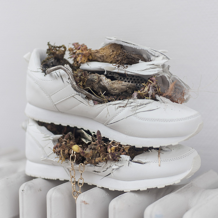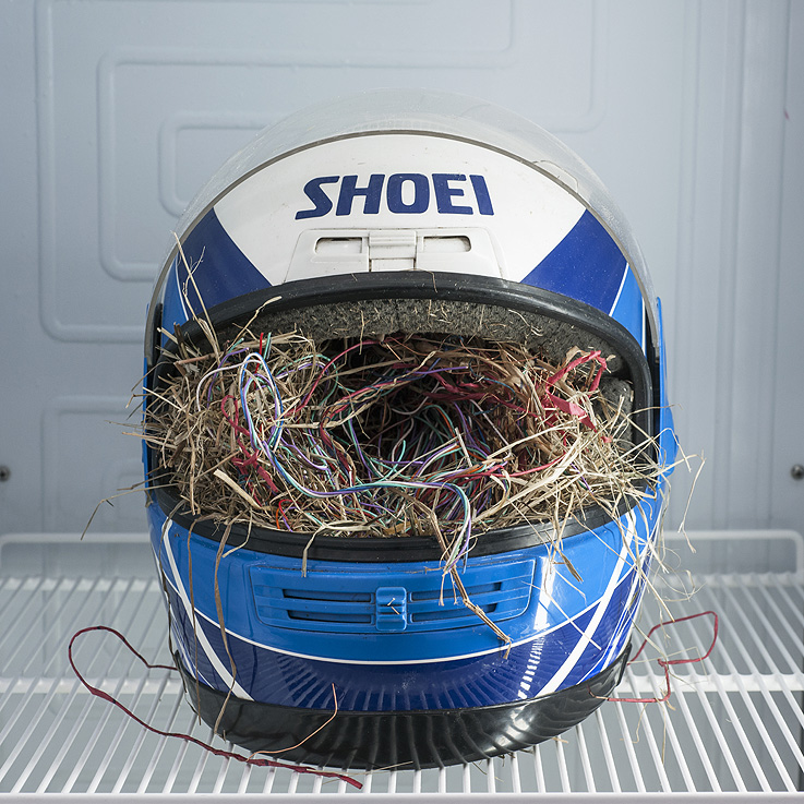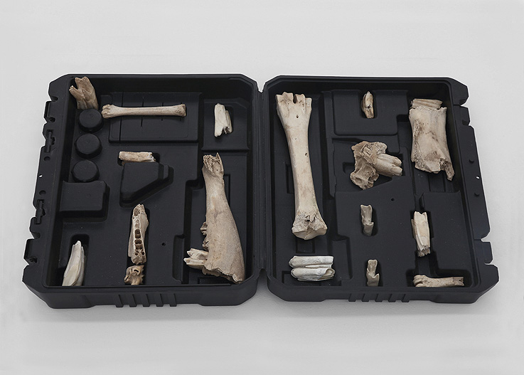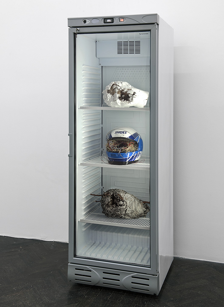 La obra de Nicolás (Lima, 1980) es un museo siniestro de historia natural, un retrato del Antropoceno, de tí vaya, de lo que estás haciendo y del abismo ambivalente que esto significa. Es una enciclopedia de los vestigios de nuestro paso por la historia, lleno de nuestros putos restos, huesos, cables, vasijas, cascos de moto super tecno, en fin, de pelo, de estanterías de Ikea, lleno de nuestros objetos de consumo y de nuestras costumbres. Una mirada entre el arte y la ciencia de los estratos geológicos que hemos dejado y los que vamos a dejar, tanto huellas de pasos mal tomados, como las marcas bellas de los grandes avances. Nicolás y yo tenemos amiga/os en común pero vive en Bélgica así que nos conocemos hace poco en la exposición en la que participa comisariada João Laia para la Casa Encendida, Ahogarse en un mar de datos. Hablamos allí, nos sabe a poco y de ahí surge está entrevista: