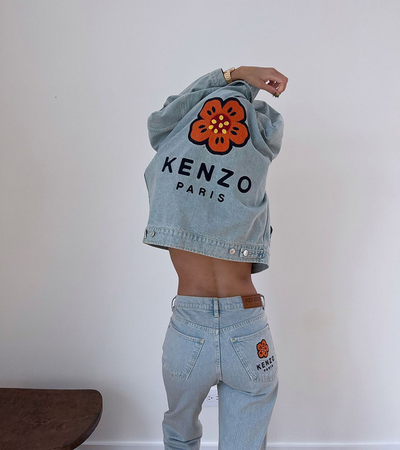 Cazadora y vaqueros de la primera colección de Nigo en Kenzo. Foto: @Kenzo