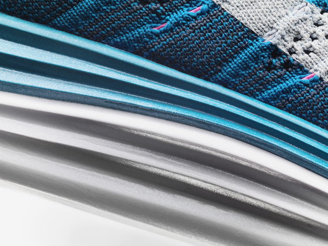 (1) Tecnología Nike Flyknit: un único hilo entretejido construye la superficie superior de la zapatilla, sin costuras y sin cortes de materiales, lo que, además, reduce la producción innecesaria de residuos. Esta técnica avanzada permite crear diseños ligeros que se ajustan a todos los movimientos del pie, eliminando zonas de fricción. Un poco más abajo verás un vídeo de cómo se aplica esta tecnología, es un flipe (o, mejor, fliPie)