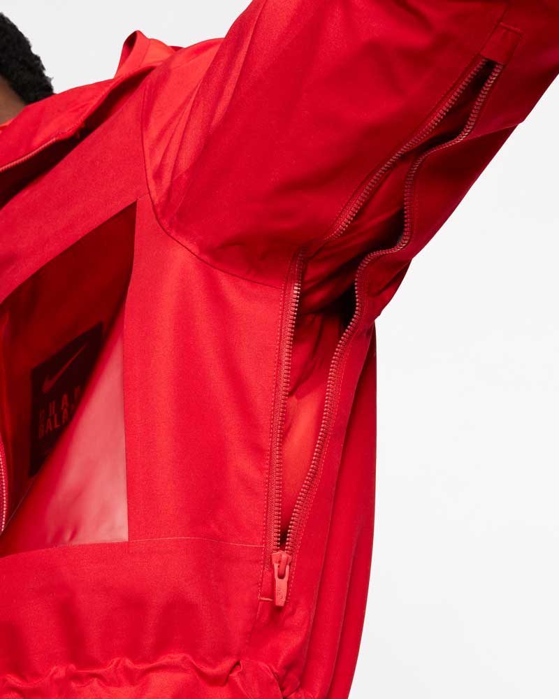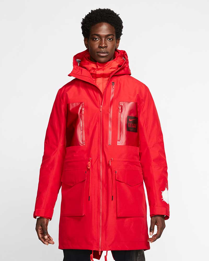 La parka Fistail de Nike x Undercover 2019 es totalmente funcional. Por ejemplo, en la manga nos encontramos una ventana para el reloj. También presenta tres bolsillos con cremallera en el pecho, y dos bolsillos laterales con fuelle para que puedas transportar todas tus necesidades diarias. El interior está acolchado, y dispone de unas cremalleras para ventilar en caso de exceso de calor. Porque aunque parezca que no tiene mucho volumen, esta parka es como un acogedor horno para el invierno. Dentro estás como en casa, aunque fuera llueva o caigan rayos y centellas.