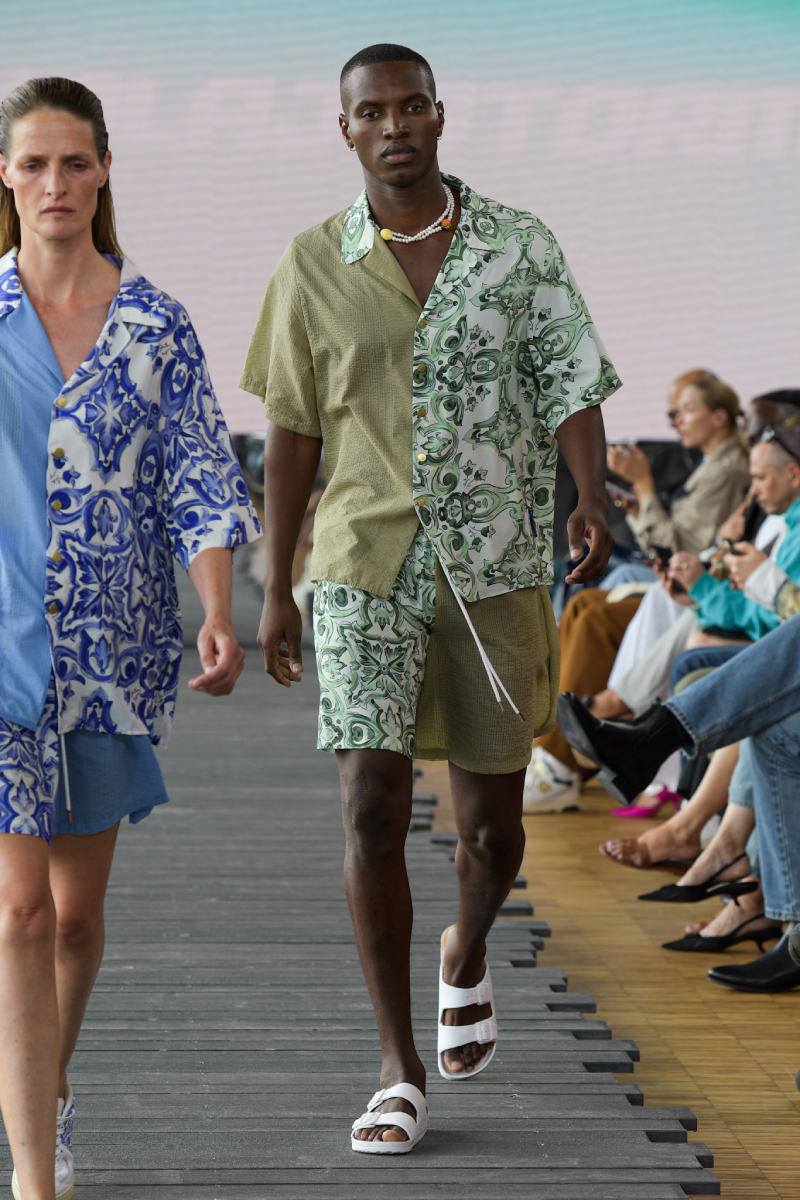 Nikolaj Storm SS22 presenta multitud de prendas que destacan por sus grandes estampados y gamas cromáticas. En esta colección podrás encontrar, camisas, pantalones, conjuntos de baño, trajes, sombreros y hasta vestidos oversize imprimados en tonalidades que brillan por sí mismas.