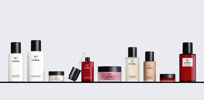 La flor de camelia es uno símbolos que representa a Gabriel Chanel y su eterna casa. Una de las variedades de la flor de camelia roja, el Zar de la camelia japónica, cuyos pétalos imperiales ignoran el frío inspiran al equipo de Investigación de Chanel para crear Nº1 de Chanel, una innovadora línea de belleza eco-responsable que combina tratamiento, maquillaje y agua perfumada.