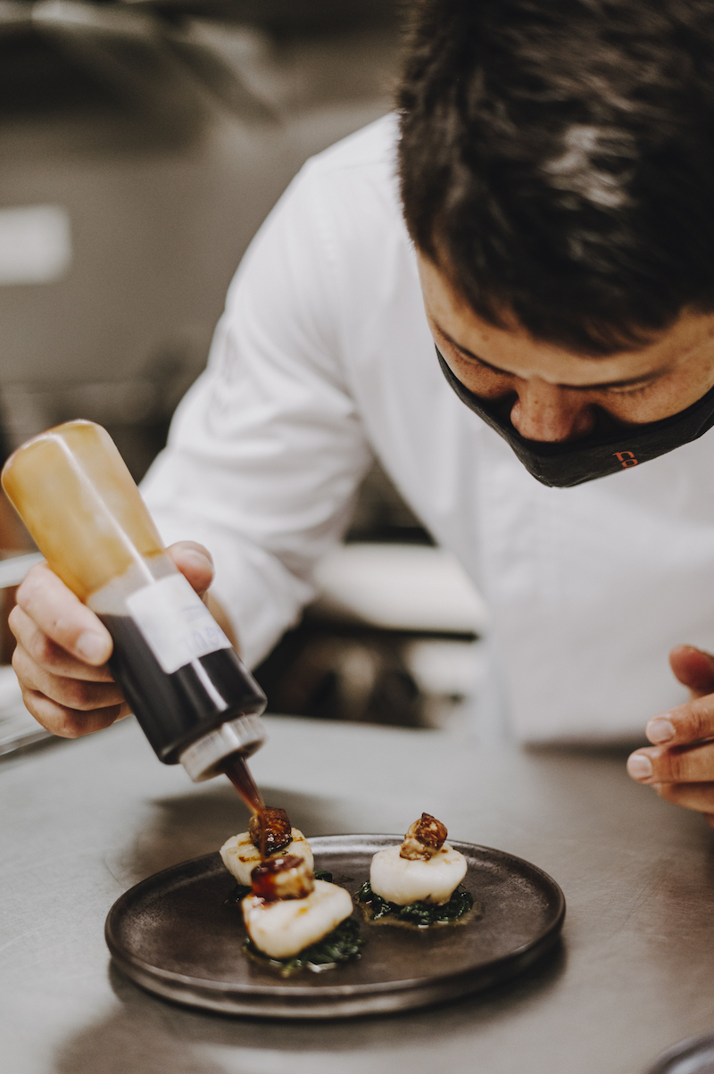 Este chef de alma inquieta sintió atracción por los fogones desde muy joven, cuando decidió compaginar sus estudios de economía en la universidad con pequeños trabajos en diferentes restaurantes. Ya en España, se encontró con un producto que le conquistó y que presenta en Nomo sin enmascarar para sorprender al comensal con el sabor natural de los alimentos.
