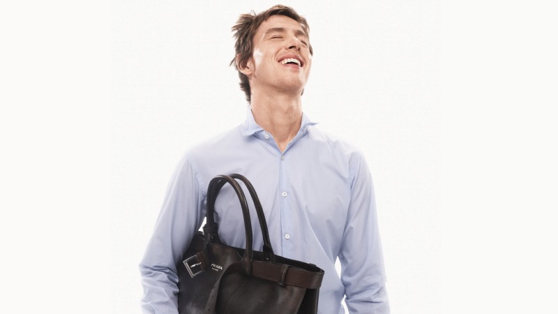 Harris Dickinson posando para la campaña de Prada SS25. Fotos: cortesía de Prada/ Steven Meisel.