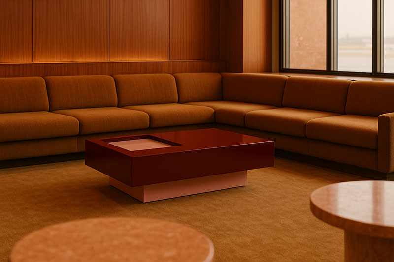 Esta mesa posee un encanto hipnótico e ineludible. Sus proporciones -120 × 70 × 33 cm- coronan un tablero en rojo vino que domina el espacio con elegancia, mientras la base rosa claro de 14 cm le aporta ese atrevido contraste que la hace imposible de ignorar.
