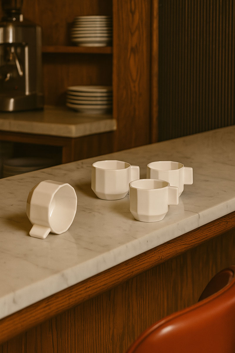 Si el café es el oráculo que inaugura tus mañanas, las tazas espresso Angoli  están listas para robarte el corazón… y un poco de protagonismo en la cocina. Su geometría, heredera de la Bauhaus, convierte cada sorbo en un fugaz viaje al museo del buen gusto.