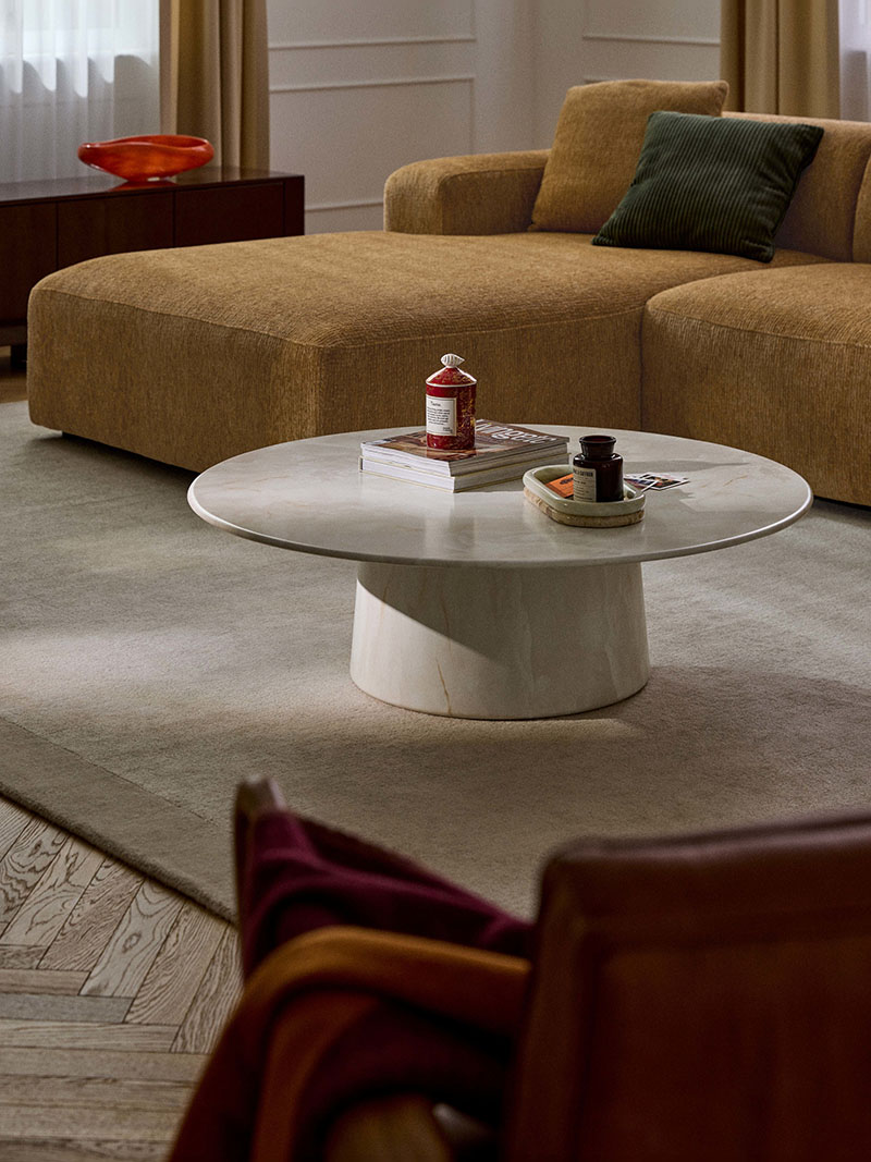 Minimalista y refinada, Jael dibuja una silueta circular de 105 cm de diámetro en un blanco crema impoluto, tan ingrávida a la vista como un soplo de aire matinal. Pero atrévete a desplazar sus 60 kg y comprenderás quién impone respeto. ¿Centros de mesa, copas, candelabros y hasta un felino dormitando sobre su superficie? Ni se inmuta: soporta hasta 150 kg.