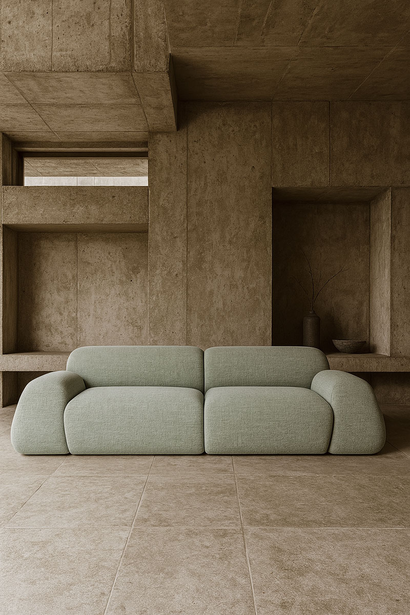 La versión modular de tres plazas multiplica las opciones: 256 × 65 × 118 cm de proteico diseño, con módulos que pueden reorganizarse según el espacio o las personas que se vayan a sentar en él. Su extensa y casi inabarcable paleta cromática encuentra en el verde salvia (véase en la primera foto de este artículo) su versión más irresistible y nuestra absoluta favorita.