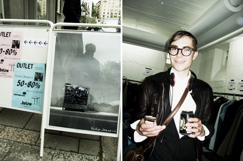 La marca sueca Nudie Jeans abrió ayer un outlet para “pulirse” el stock de temporada. Como ya se sabe, la mayoría de las marcas escandinavas, o más concretamente las suecas, gozan de prestigio internacional. Su mercado está tanto en Europa, Asia o América. Lógicamente el “downturn” no ha beneficiado en nada a ninguna de ellas en esta última temporada, de manera que al mal tiempo buena cara. Todas las marcas juegan una estratégia de ventas con mejores precios online. También alquilando espacios por varios dias donde poner las prendas con precios por los suelos. Whyred, Filipa K, Carin Wester, etc. Ayer nos pasamos por la inauguración del outlet de Nudie. Prendas entre el 50% y 80%. Podrias encontras cosas entre 10 y 20 euros. Cerveza gratis y por supuesto fiesta divertida asegurada. Nudie fueron pioneros en trabajar con una linea de algodón orgánico. Su responsable de ventas nos confirmaba que el mercado donde actualmente arrasan es en Japón. EL outlet seguirá durante toda la semana.
