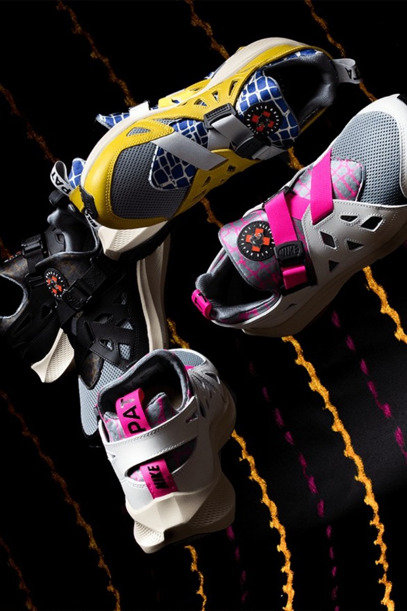 Si esta colección mira al equipo de running de Patta, tendría que ofrecer unas zapatillas para salir a correr, ¿no? Efectivamente. Esta cápsula presenta una nueva silueta para corredores callejeros basadas en las míticas Air Huarache. El nuevo modelo híbrido presenta un upper construido con una base de mesh y superposiciones de piel premium. También, el empeine se ha modificado con un sistema de correas cruzadas que se aseguran con hebillas. Y, como elemento de performance, se ha tomado la suela runner de las Pegasus.